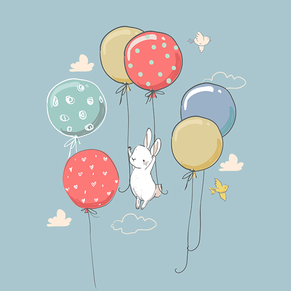 Panel teplákovina - Zajíček s balónky na modré
