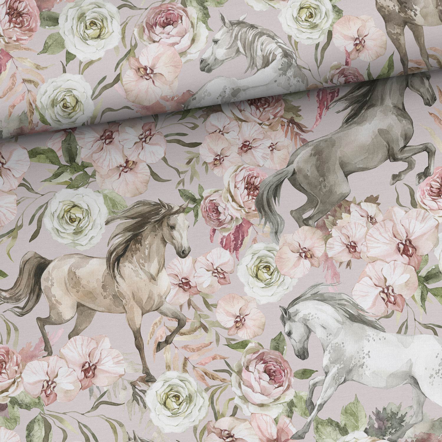 Teplákovina - Koně v růžíchskladem 0.5 m399 Kč/ m